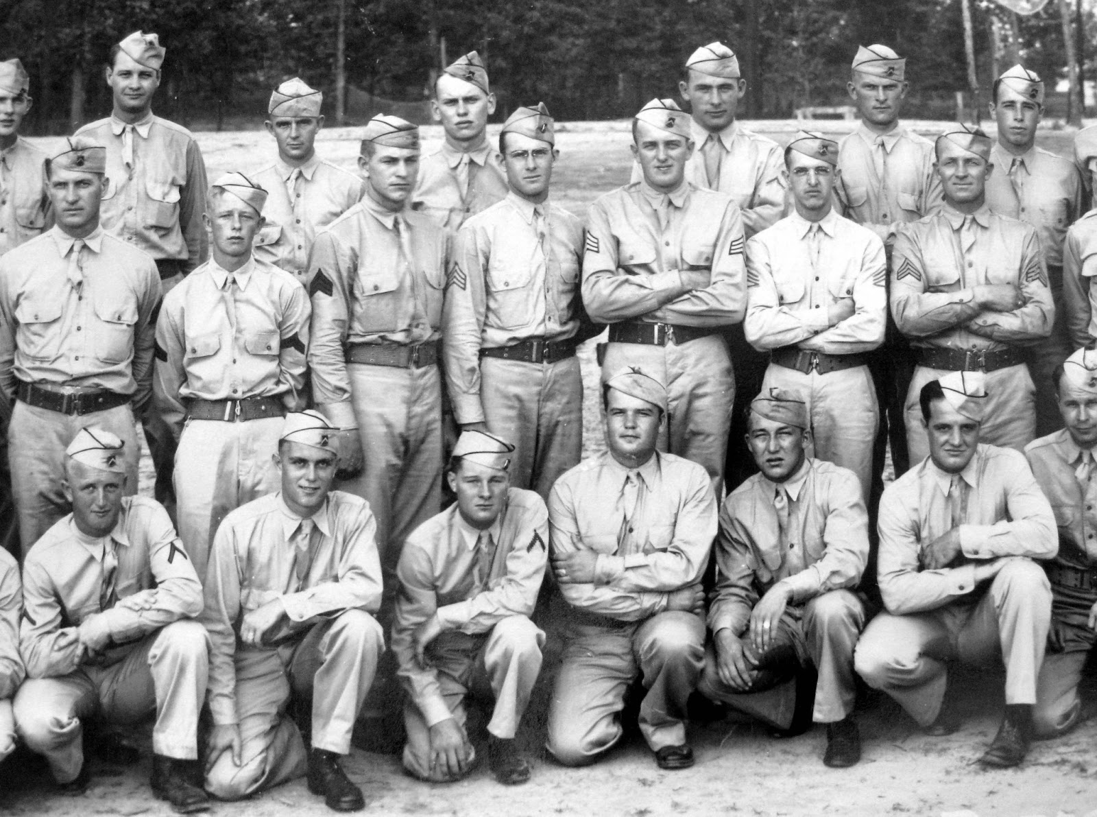 My father was in the 123d Field Artillery when the Illinois-based unit was activated in 1941. This photo was taken at Camp Forrest, Tennessee, in August before Louisiana maneuvers. The last names were taken from Dad's notes on the back of the wide-angle photo.